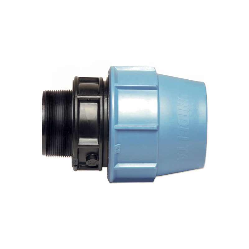 Компресійні фітинги із поліпропілену забезпечують досконалу гідравлічну герметизацію в системах розподілу води під тиском. З`єднувальна система складається з приєднання поліетиленової труби затискним кільцем, що охоплює та фіксує трубу після того, як блакитна гайка буде затягнута. Технічні характеристики компресійних фітингів Unidelta роблять їх надзвичайно швидкими і легкими в монтажі. Діапазон діаметрів — від 16 мм до 110 мм (16 бар номінальний тиск). Основні компоненти компресійних фітингів Unidelta виготовлені з наступних матеріалів: корпус, втулка та гайка — надміцний поліпропілен (PP-B) з УФ захистом; ущільнення — нітрилова гума (NBR); затискне кільце — ацеталова смола (POM).