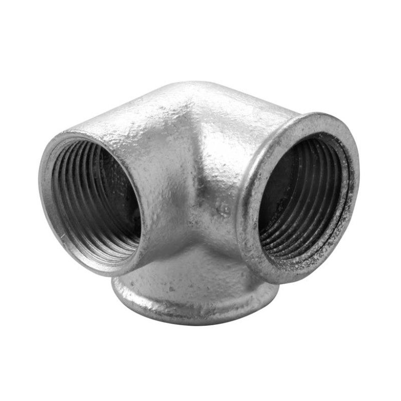 фітинги чавунні оцинковані різьбові кутові трійники з внутрішньою різьбою проходять закалювання при 1060 ˚C, має гаряче цинкування з товщиною захисного шару 70 мкм (маса покриття 500 г/м²). З'єднувальна різьба відповідає EN-10226-1 тип R-Rp, а кріпильна різьба на гайках та їх сполучення розраховано на відповідність стандарту EN ISO 228-1. Фітинги підходять для сталевих труб, згідно з EN 10255 від 1/8 до 6 дюймів для використання у системах опалення, охолодження, кондиціонування та вентиляції, систем поливу, санітарного водопостачання холодної та гарячої води, установках пожежогасіння, а також трубопродів стисненого повітря.