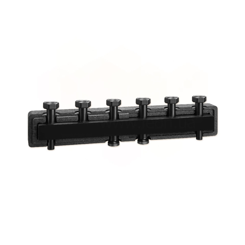Колектор для систем опалення та кондиціонування. Сталевий корпус. З ізоляційним кожухом. Основні сполуки: 1 1/2 "зовнішня різьба. З'єднання відводів: 1 1/2" внутрішнє різьблення з накидною гайкою. Максимальний робочий тиск: 6 бар. Діапазон температур: 5-110 ° C. Укомплектований сталевими кронштейнами. Компактні колектори використовуються в системах опалення, щоб забезпечити різні налаштування тепла в різних приміщеннях, коли є тільки один теплогенератор. Різні конфігурації компактні і їх можна легко встановити в будь-який вид гідравлічного контуру, що має переваги простоти установки та економії корисного житлового простору. Колектори мають попередньо сформовану ізоляцію оболонки, що гарантує ідеальну теплоізоляцію.