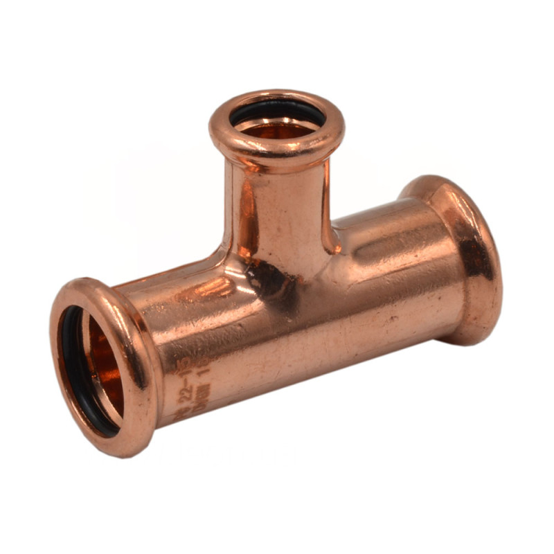прес фітинги мідні трійники редукційні внутрішнє з'єднання Raccorderie Metalliche використання в системах водопостачання, опалення та охолодження, відкритих і закритих водяних контурів, а також систем газопостачання. Ущільнювальні кільця можуть використовуватися при температурі від -20 до +120 °C, а максимальний робочий тиск 16 бар забезпечує якість і безпеку. Фітинги системи aesPres виготовляються з високоякісної міді DHP і червоною бронзи, та доступні в діаметрах з 12 по 54 мм. Дані матеріали прес-системи дозволяють прямо конкурувати з традиційним методом монтажу, таким як пайка: на її тлі переваги продукції Raccorderie Metalliche помітно виділяються. Всі фітинги поставляються з кільцями ущільнювачів з EPDM.