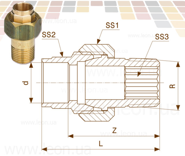 фітинг бронзовий збірка перехід пайка — зовнішня різьба Adapter union 4341G