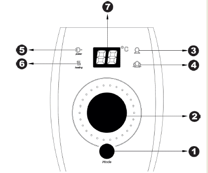 - Индикация подключения к электросети, состояния нагрева и выбранной мощности. Возможность выбора пользователем мощности 1200 Вт или 2000 Вт одной кнопкой.