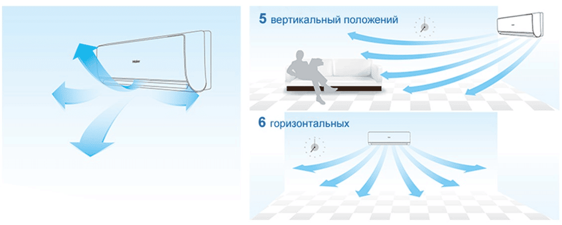 - 3D воздушный поток. Моторизированный электропривод верхних и нижних жалюзи дает пользователю широкие возможности для выбора направления воздушного потока. Вы можете точно зонировать помещение для поддержания оптимального микроклимата благодаря 8-и позициям регулировки потока воздуха.