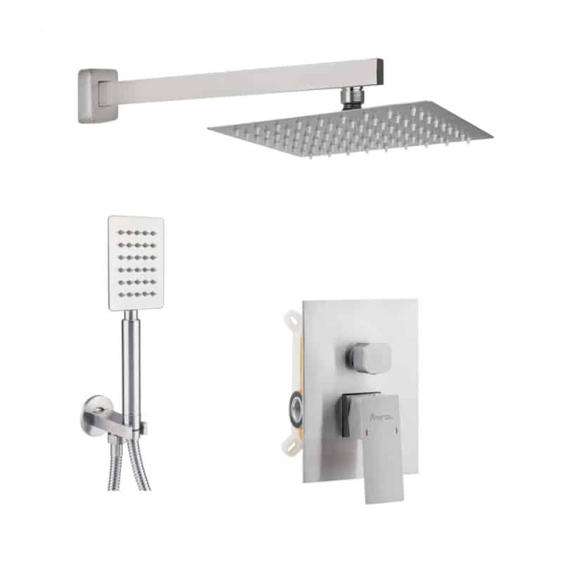 Представленная здесь душевая система скрытого монтажа 33-010-20 от Imperial состоит из кронштейна длиной 40 см, лейки верхнего душа с диаметром 20 см, ручной лейки диаметром 8 см и оснащается одноструйным режимом работы. Душевая система изготовлена из высококачественной нержавеющей стали.