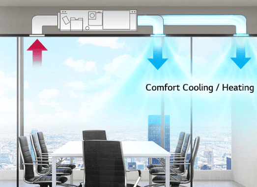 Внутренний блок канального типа LG CM24 N14R0 может использоваться в бытовых и коммерческих помещениях. При установке техники необходимо учитывать понижение потолков.