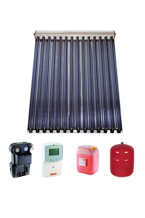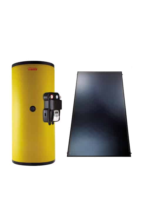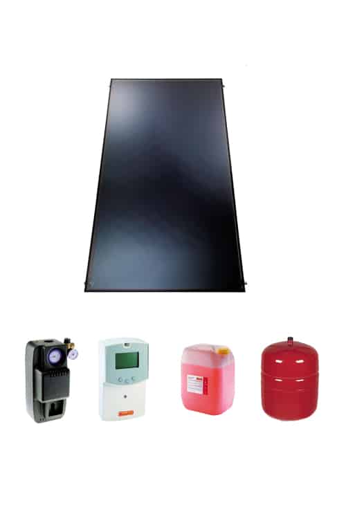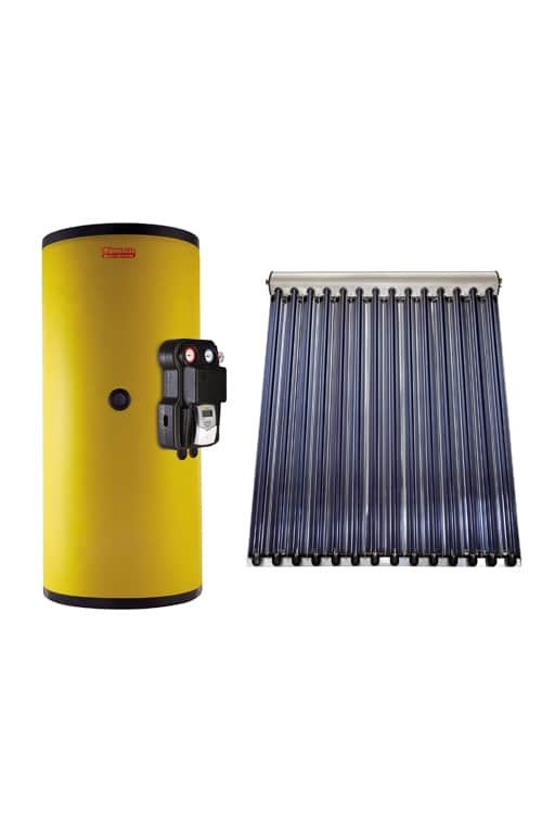 Комплект гелиосистемы по цене изготовителя включает солнечный коллектор, который аккумулирует и передает солнечную энергию для нагрева воды для горячего водоснабжения и системы отопления. Он продается вместе с бойлером объемом от 550 литров для подогрева воды разного назначения.