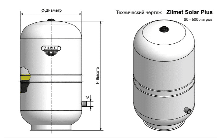 Особливістю модельного ряду Zilmet Solar-Plus бака є наявність ультранадійного високотемпературного мембранного елемента, який дозволяє взаємодіяти з середовищем, що транспортується, температурними показниками до 100 °С, при чому внутрішньосистемна температура може досягати і 120 °С, а тиск в системі позначки в 10 бар.