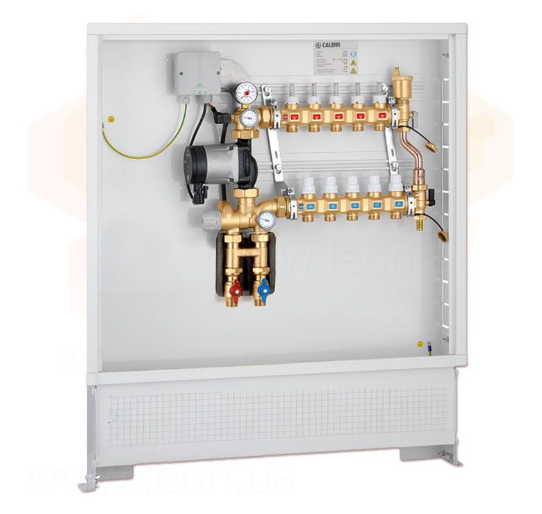 1626N3/1725N1 Колектор латунний у шафі з насосом UPS 25-60 Ø3/4″ З x 12 x 3/4″ З 10 bar CALEFFI