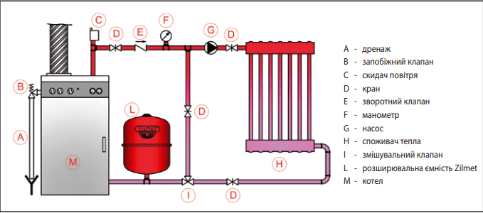 Расширительный бак Zilmet Cal-Pro 35 л помогает компенсировать увеличение объема воды в системе отопления в результате повышения температуры теплоносителя. Установленное заводское давление в баке давит на поверхность резиновой диафрагмы изнутри. При повышении температуры растущий объем воды давит на мембрану и вода поступает в бак, обеспечивая дополнительное пространство системе отопления. С понижением температуры давление сжатого воздуха возвращает воду в систему. Это позволяет системе отопления поддерживать постоянное давление и помогает снизить энергопотребление.